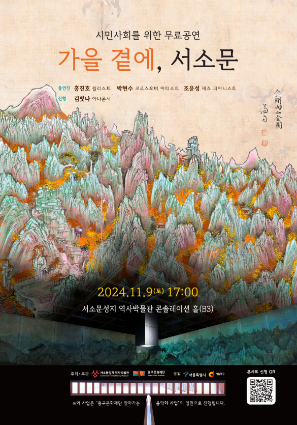 서소문성지 역사박물관이 주최하고 중구문화재단이 주관하는 이번 음악회는 깊어가는 가을 저녁 첼리스트 홍진호, 크로스오버 아티스트 박현수, 재즈 피아니스트 조윤성이 클래식, 팝, 영화음악으로 구민들에게 감동을 선사할 예정이다.
